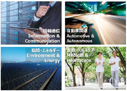 京セラでは重点研究開発領域として、エネルギー・医療ヘルスケア・モビリティ・情報通信の4つの分野に注力しています。それら4つの分野を連携させスマートシティ、宇宙・海洋産業開発、交通・物流などへの活用を目指しています。また事業シナジーが生まれるような尖った技術をもつ企業やベンチャー、大学などと共同研究や業務提携、共同実証実験などに取り組み、新たなビジネスソリューションが生まれることを目指してオープンイノベーションに取り組んでいます。